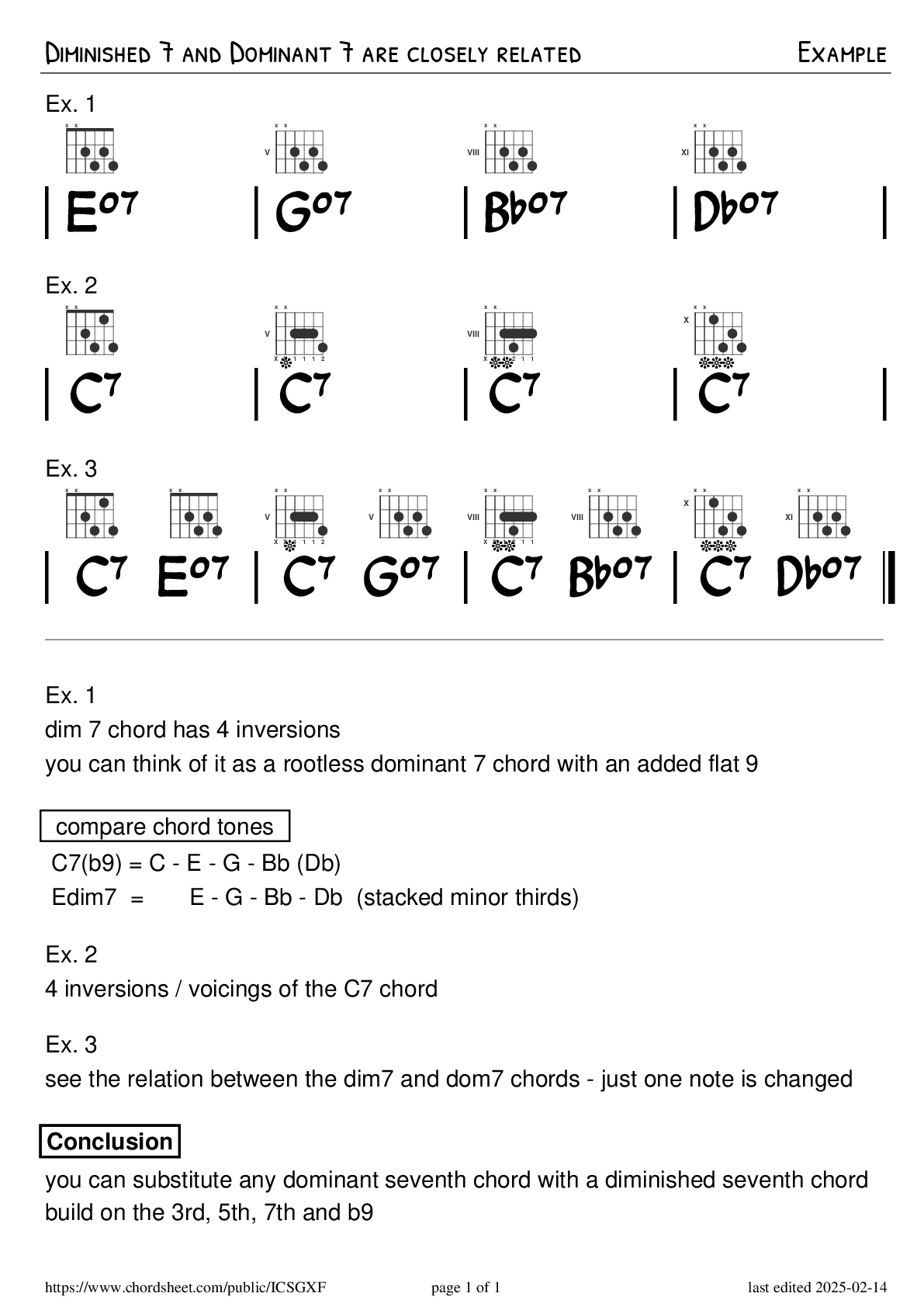 Example Diminished 7 and Dominant 7 are closely related